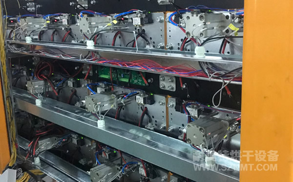 4、表托上電測試機構:為保證設備可靠性,需要上電治具與產品載具配合安裝,保證機架與倍速鏈安裝調試OK后,才能安裝外側保溫板,由耐美特負責調試(機架與倍速鏈的安裝調試以及保溫板的安裝)
